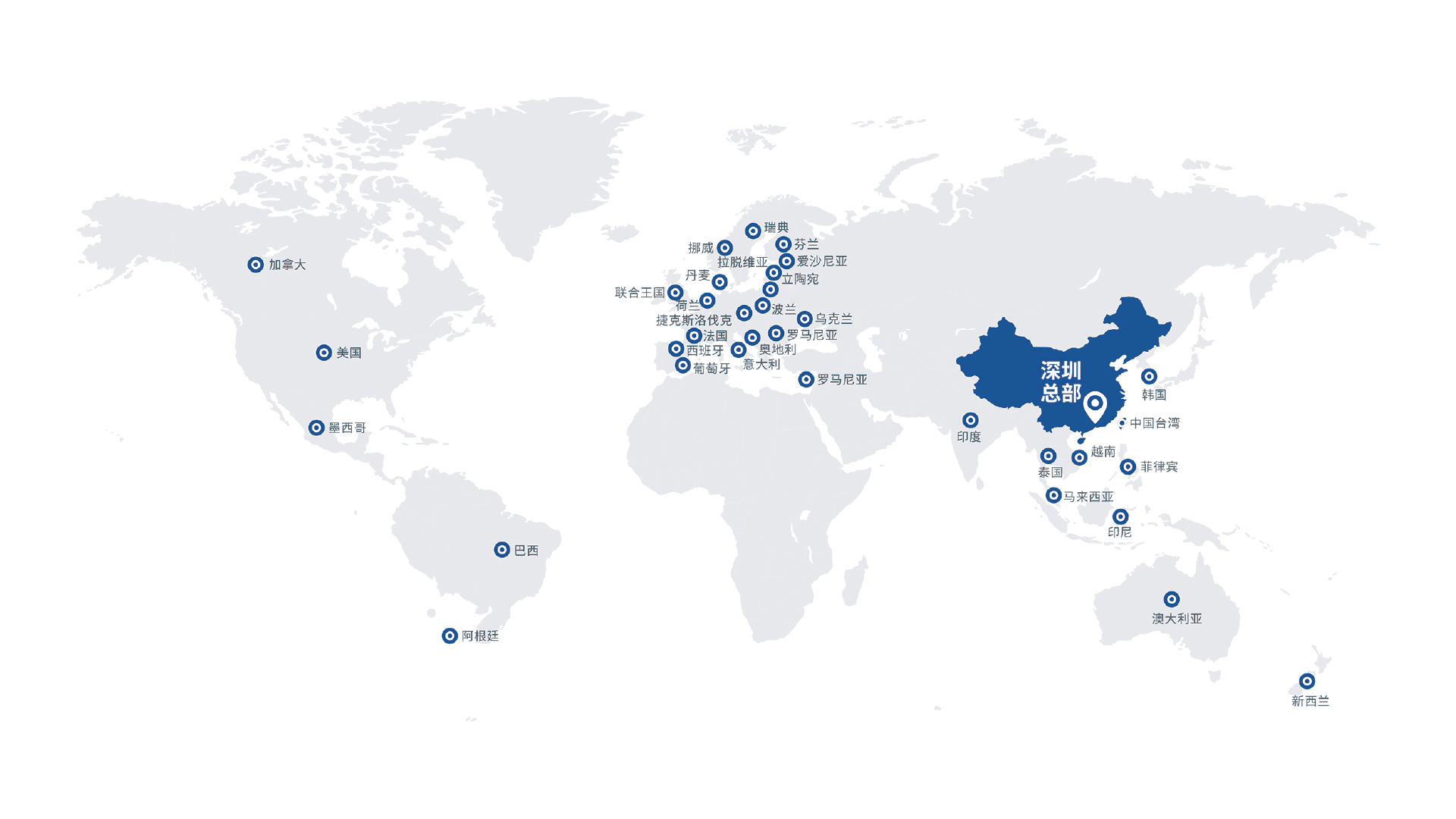 立足于國內(nèi)深圳、張家港、常州、天津、長沙、蘇州、濟南生產(chǎn)基地與備品備件庫,國內(nèi)外轄180+辦事處,在100多個國家和地區(qū)設立銷售服務機構,為全球用戶提供高品質的產(chǎn)品與優(yōu)質高效的服務。